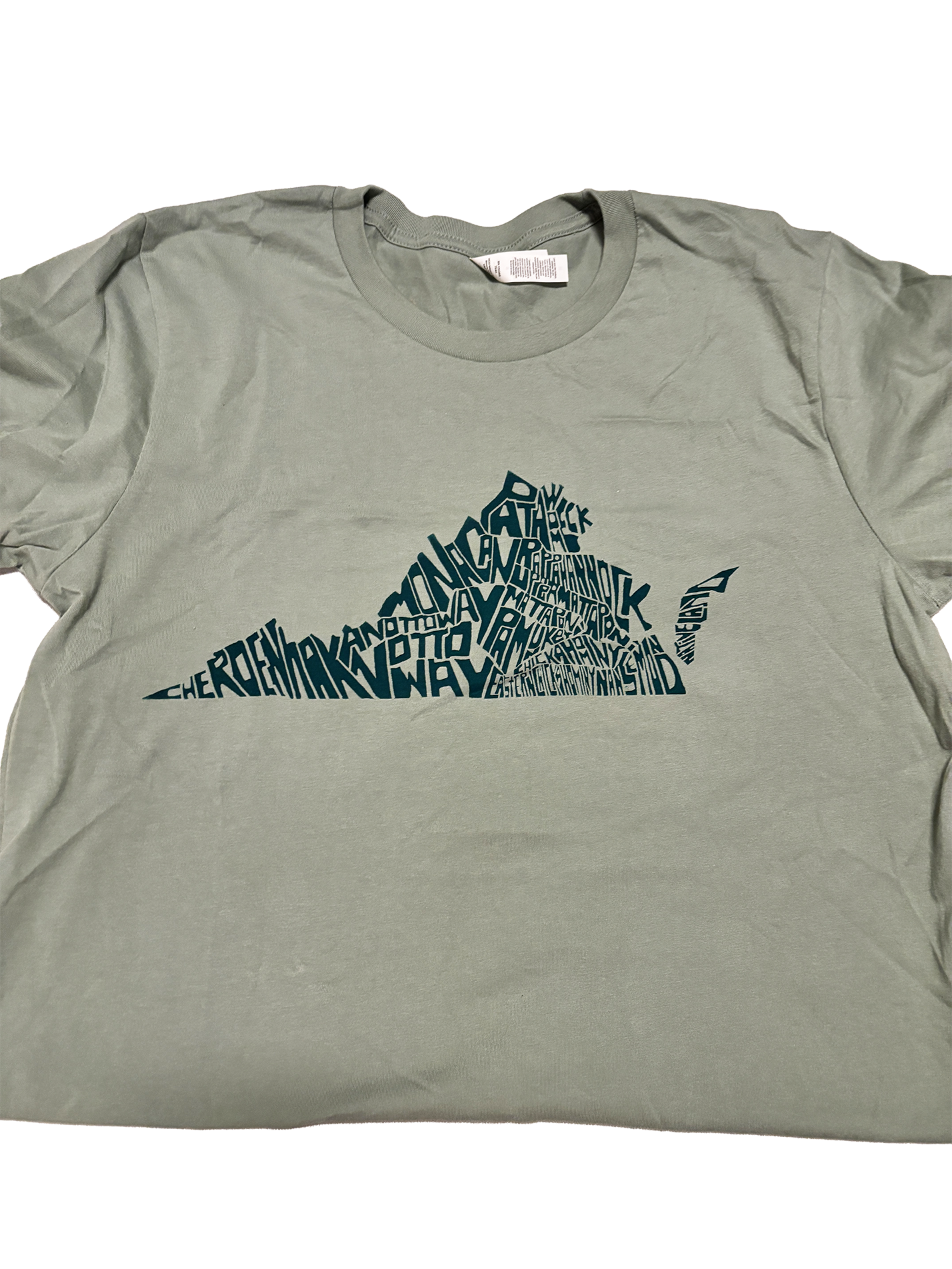 Virginia Typography Map Green & Gold - Digital file download 8.5x11