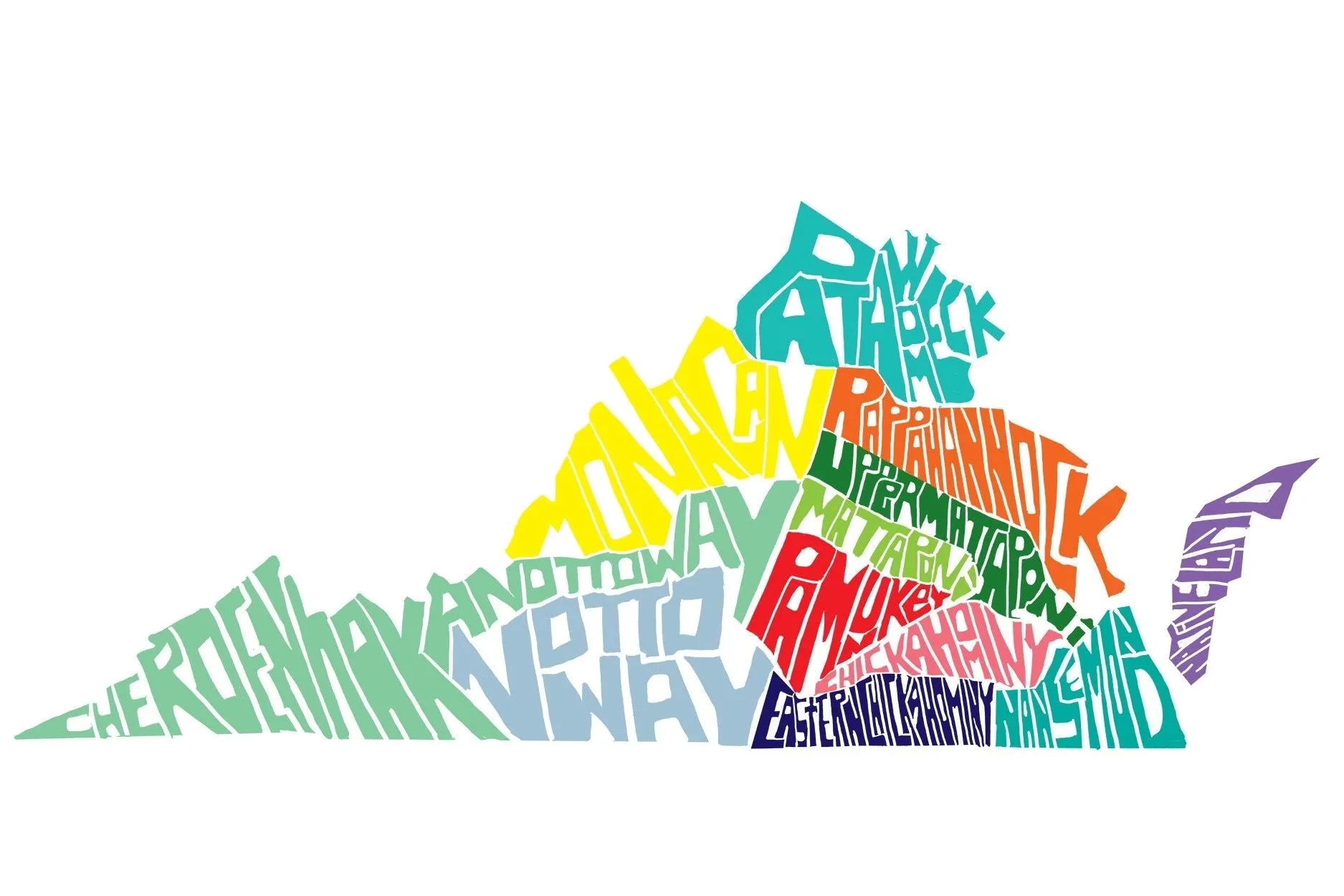 Virginia Tribal Map Multicolor Print